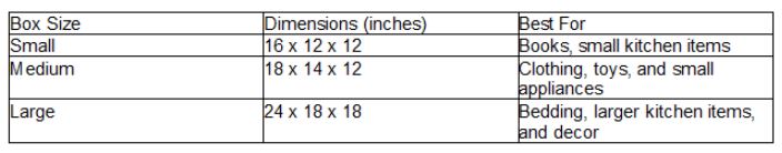 These dimensions help you choose the right box for your items, ensuring they fit well and are protected during the move.