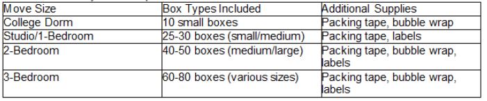 ● Kitchenware: Medium boxes (approximately 3.0 cubic feet)